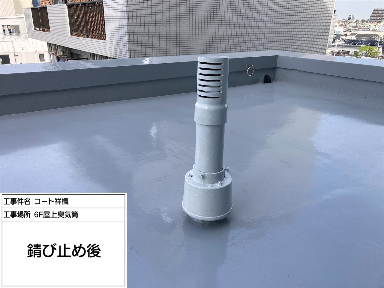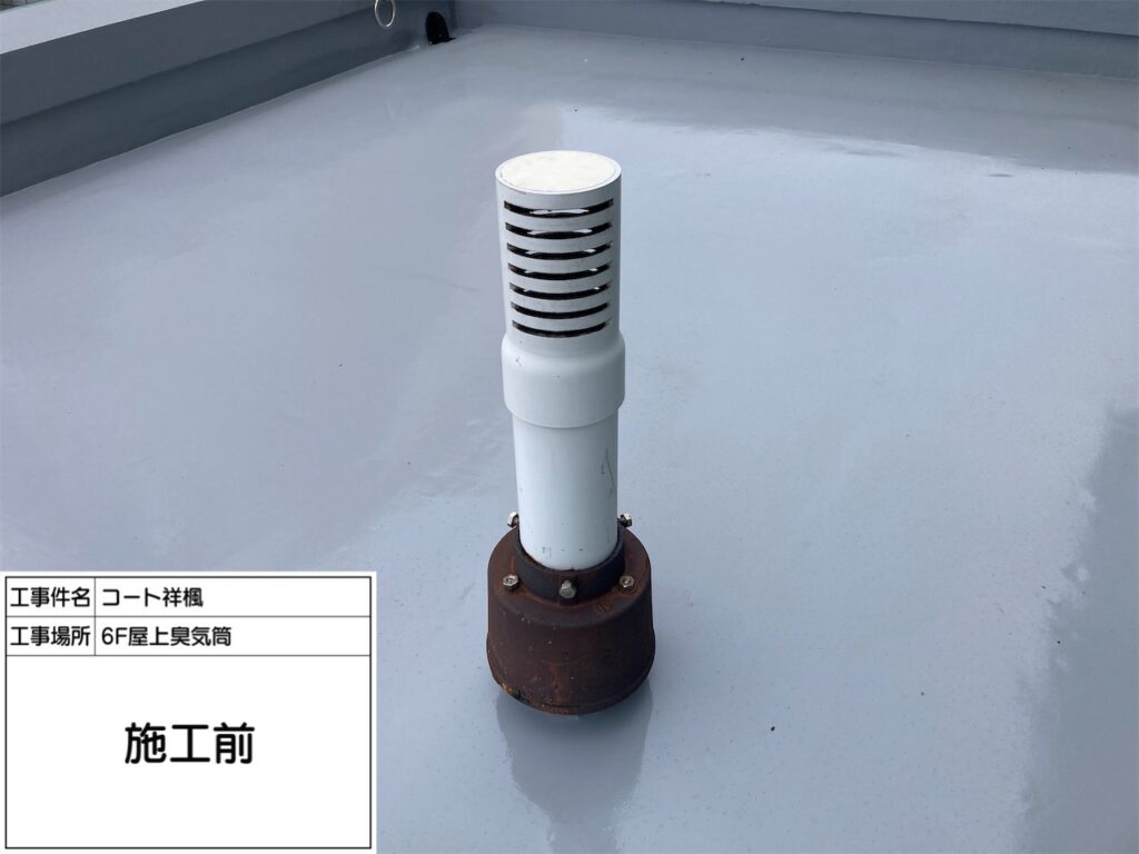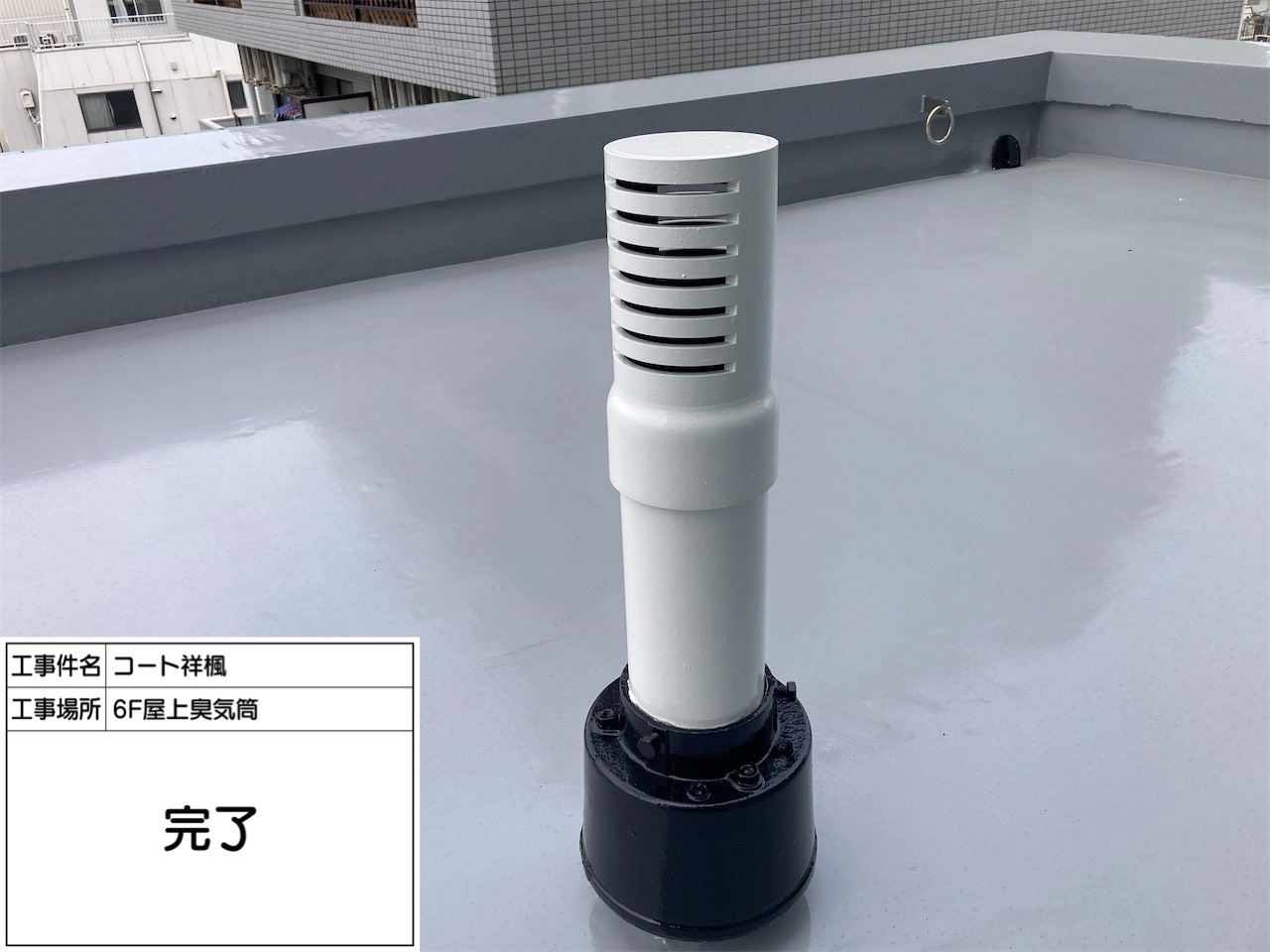 屋上防水工事・臭気筒塗装・扉改修工事|東京都中野区の分譲マンション