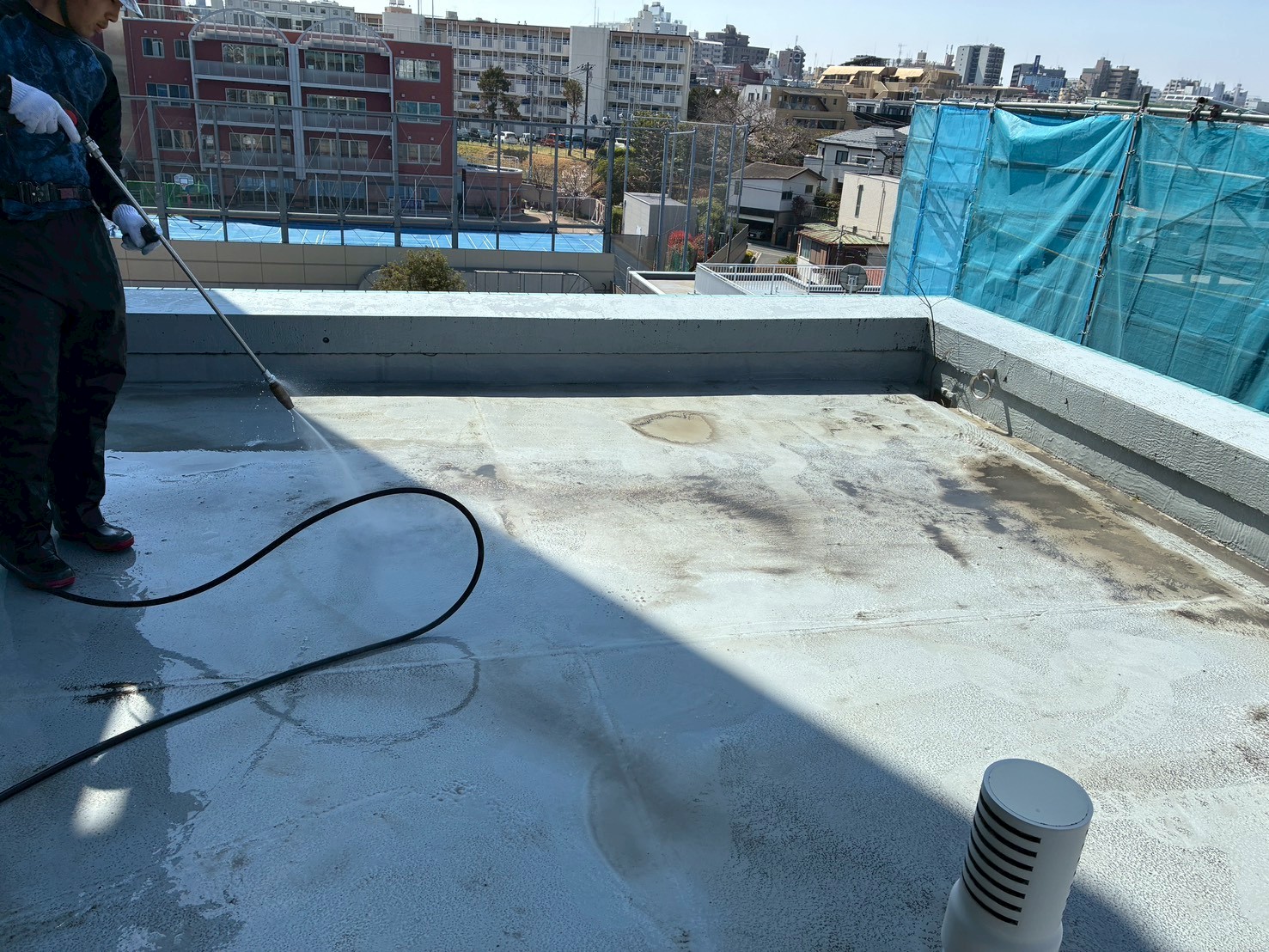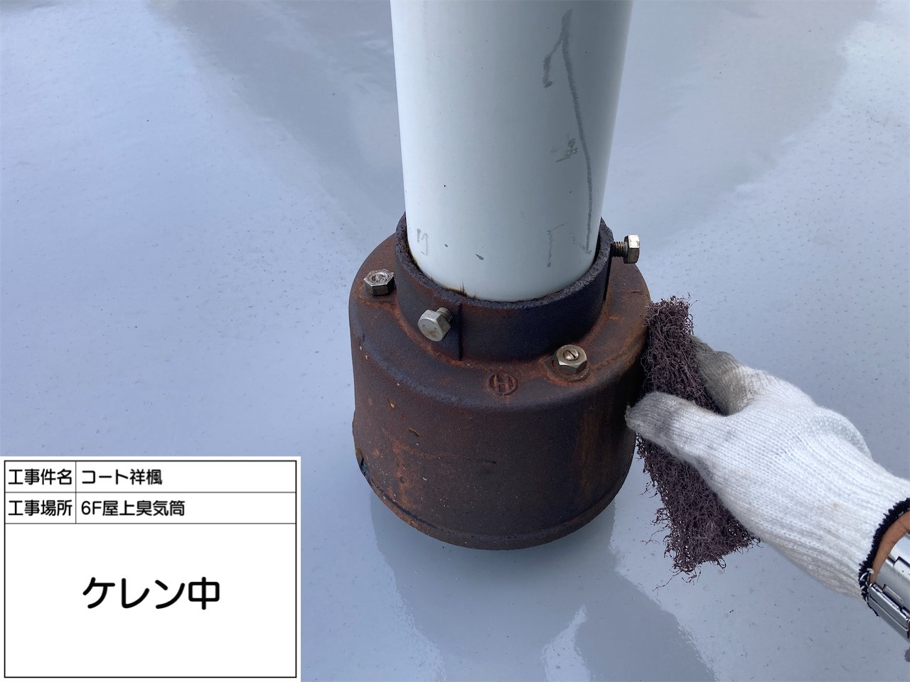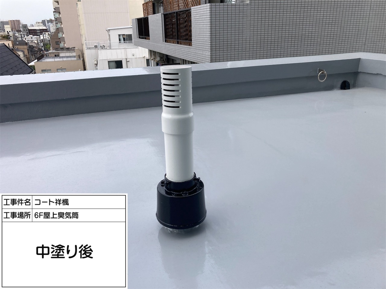 屋上防水工事・臭気筒塗装・扉改修工事|東京都中野区の分譲マンション